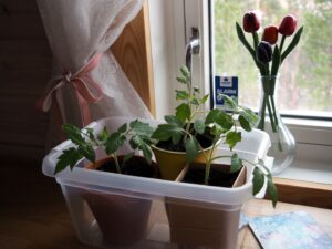 Tre tomatplanter av Randi er med til ”Lunden” og skal tilbake med oss til Svelvik 🍅🍅🍅 Drie tomaatplantjes van Randi zijn mee naar ”Lunden” en gaan ook weer mee terug naar Svelvik 🍅🍅🍅