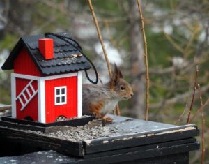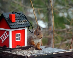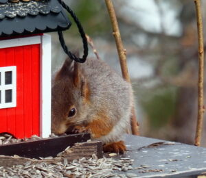 Goudvinken, matkop en boomklever zagen we in de winter. Maar nu komen ook andere vogels terug op ”Lunden”. En de eekhoorn 🙂