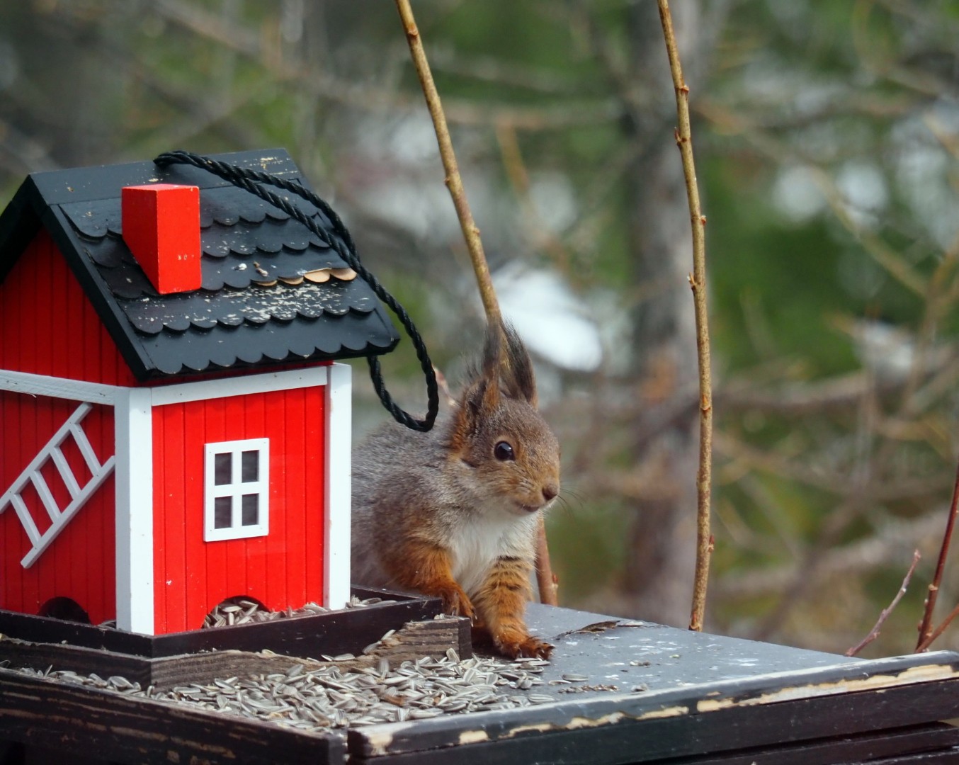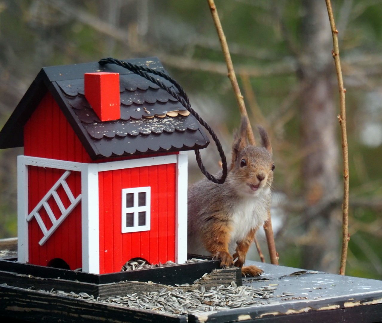 Dompapen, granmeis og spettmeis har vi sett om vinteren. Men nå kommer også de andre fuglene tilbake på ”Lunden”. Og ekornet 🙂