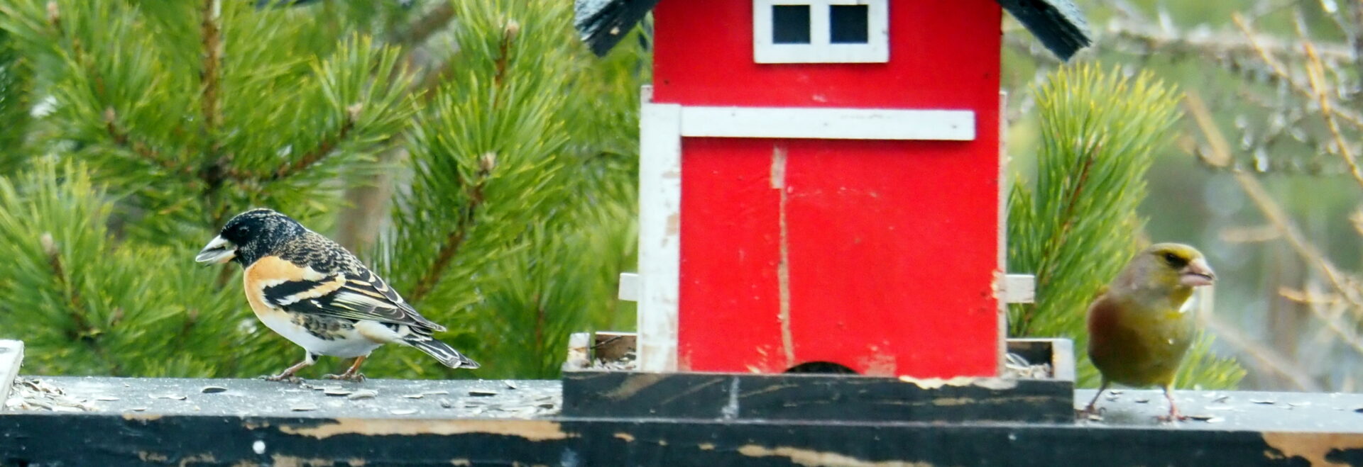 No er festen komplett! Også en bjørkefink med en grønnfink! Nu is het feest compleet. Ook nog een Keep met een groenling