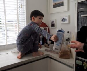 Barnebarna er travle på kjøkkenet. Bedre enn å sitte bak en skjerm! De kleinkinderen zijn druk in de keuken. Beter dan achter een scherm zitten! TIP: klikk på bildet = forstørrelse. Klik op een foto = vergroting