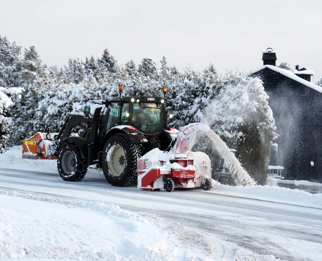 Fra huset til Ebbestad parkering passerer jeg tre brøytebiler! Van huis naar Ebbestad p-plaats rijd ik drie sneeuwschuifwagens voorbij