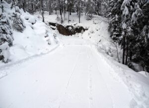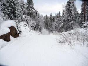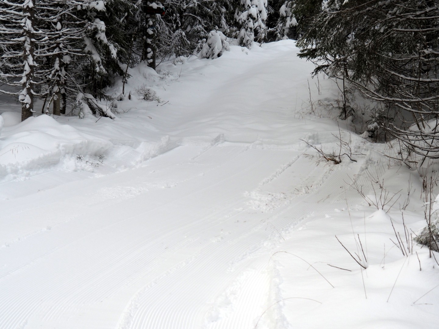 Rundløype av 10km langs Vassås var ikke mulig ennå. Jeg hørte at Ivar var med scooter i skogen for å fylle inn hull, før han dro løypen videre. Se på 2 forskjellige løypekart etter bildene.