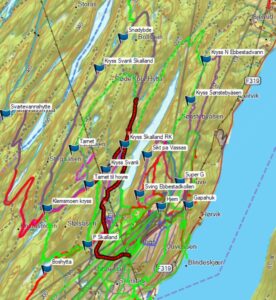 De løype van 10 km boven Svelvik en langs Vassås, kan nog niet helemaal gelopen worden. Ik hoorde dat Ivar met een scooter nog het bos in is gegaan, om ghaten te vullen, voordat hij de løype verder trok dan Vassås. Vergelijk de twee4 løyperkaarten maar.