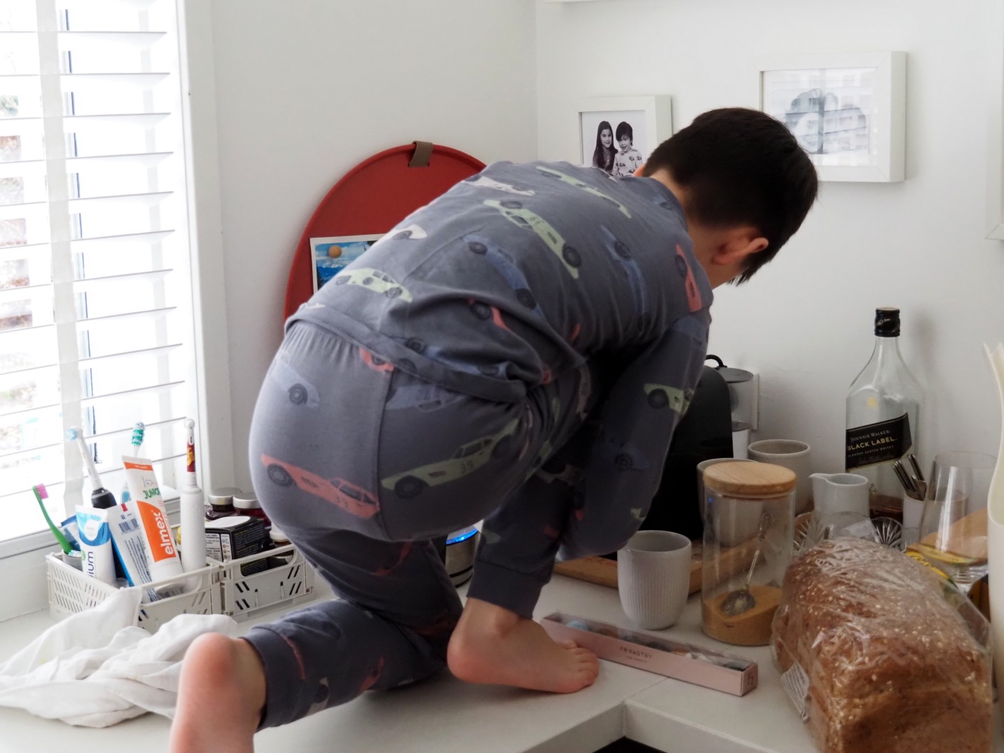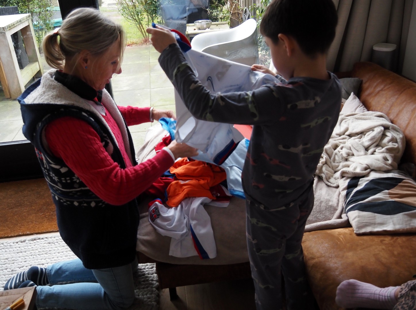 Barnebarna er travle på kjøkkenet. Bedre enn å sitte bak en skjerm! De kleinkinderen zijn druk in de keuken. Beter dan achter een scherm zitten! TIP: klikk på bildet = forstørrelse. Klik op een foto = vergroting
