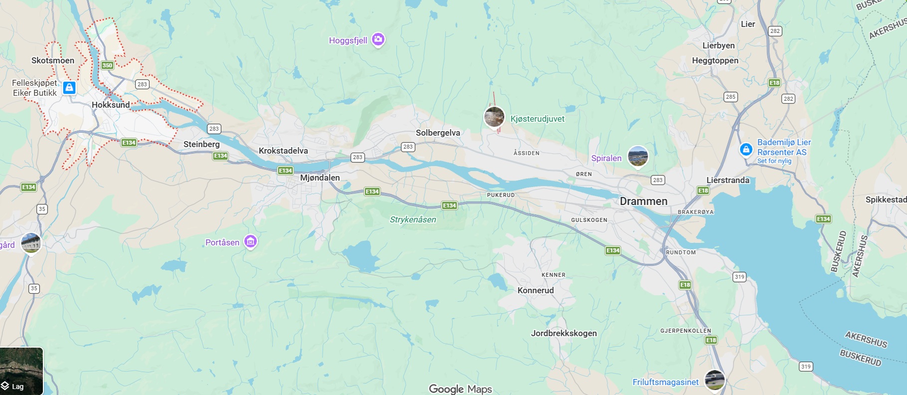 Heldigvis tar vi en annen vei til Drammen! Gelukkig nemen wij een andere weg naar Drammen!