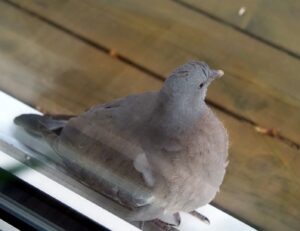 Matmor? Jeg vil inn!!! Duen banker på vinduet gang på gang og ser på meg …