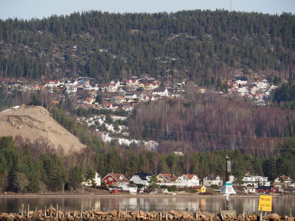 7. Aan de overkant staat een vader met kinderen te vissen. De huizen in Klokkarstua lijken geplakt tegen de berg, waar Harco iedere dag over naar AVINOR rijdt
