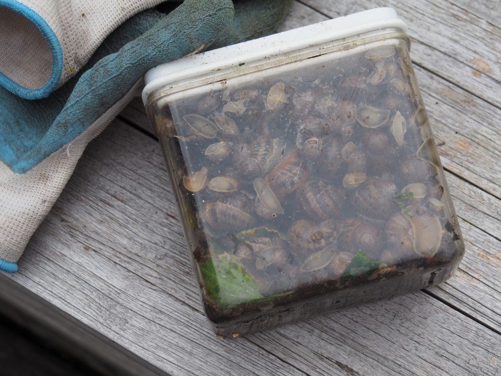 Je gelooft het niet? Dit is de slakkenvangst uit één plant!!! Ik verzamelen de buggers voor vervoer naar een betere plek